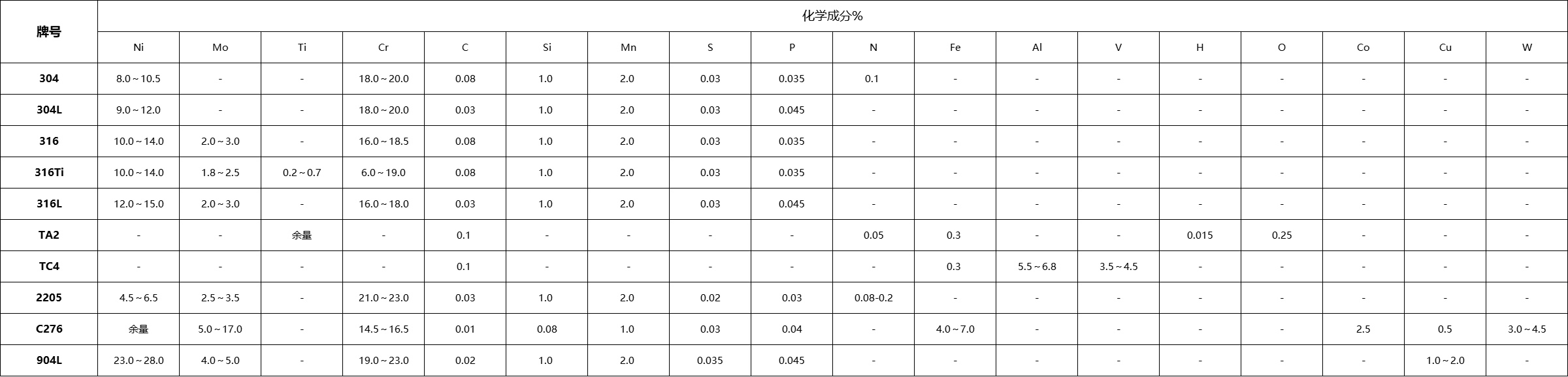 您當前的位置 : 首 頁 >> 產品標準 >> 化學成分表